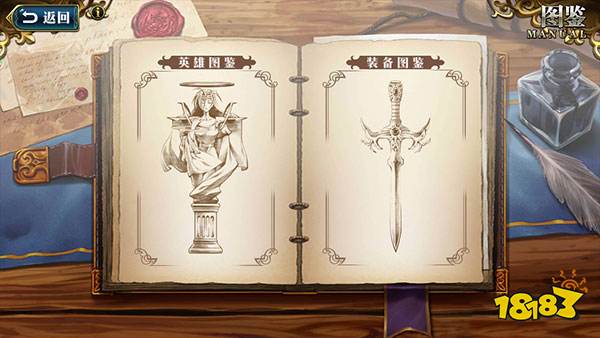 在召唤中可以查看图鉴,里面有英雄和装备图鉴,里面分布着它们的详细信息以及获得途径。