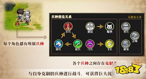 每个角色都有自己的所属兵种,兵种之间有克制关系,利用这个优势,玩家们可以进行很轻松的通关。
