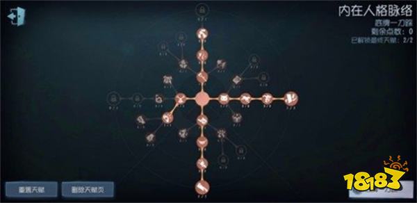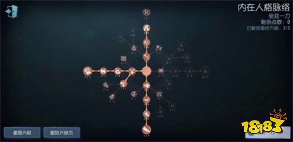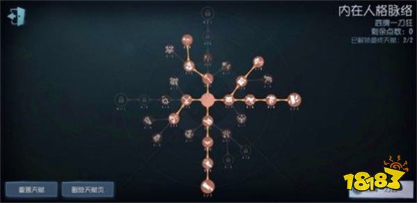 接下来是第二种天赋搭配:【底牌】+【挽留】+【破坏欲】。这种搭配适用于约瑟夫、杰克、爱哭鬼、蜘蛛、宿伞、红蝶和女巫。红蝶和女巫特别需要【破坏欲】来清理障碍物,而其他监管者在面对空军或前锋时,如果前期选择“兴奋”,则可以考虑这套天赋。在空军的枪用尽或前锋的球耗尽后,可以利用【底牌】切换为其他特质。