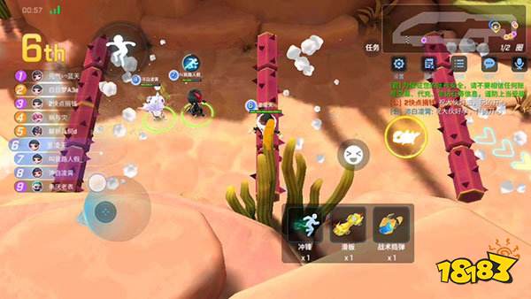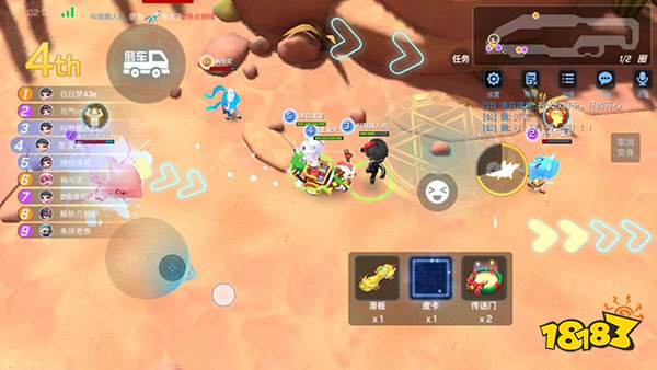 【转轮区域】这个区域的特点是两个旋转的兄弟,玩家需要巧妙地利用道具来躲避他们的攻击。首选道具是滑板和自走球,它们可以帮助玩家在躲避障碍的同时加速前进。飞爪和传送门也是不错的选择,飞爪可以抓墙规避伤害,而传送门则是一种万能的道具。如果运气好,使用皮卡和捣弹可以一次性通过这个区域。