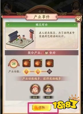 3、在弹出的界面中点击领取就可以获得产业事件奖励了。
