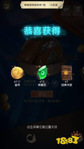 竞技场的门票价格不菲,1000金币的门票让许多玩家望而却步。然而,竞技场才是快速获得卡包的最佳途径。只要赢得两局,我们不仅能轻松获得一个经典卡包,还能获得卡牌合成道具碎晶石以及金币奖励。