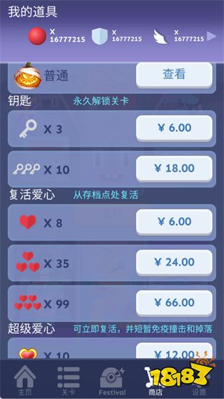 道具商店为玩家提供了丰富的道具选择,包括钥匙、复活爱心和超级爱心等。商店还会显示玩家当前拥有的道具数量,帮助玩家合理配置资源,提升游戏体验。