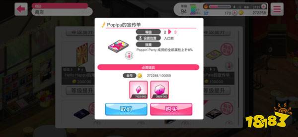 比如在CiRCLE中的商店。我们选择Popopa的宣传单,用金币和石头进行升级,就能提升乐队的实力。