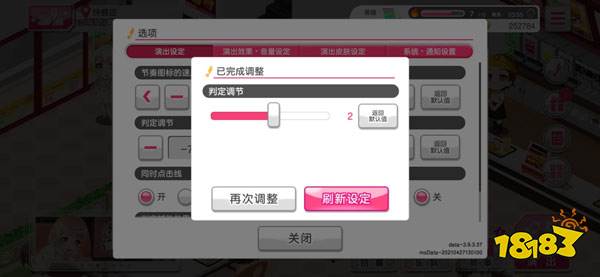 点击刷新设定就可以了,千万不要点返回默认值,不然你可就白调了。如果你还是觉得手感不对,可以点再次调整。直到调整为适合你的判定键位。