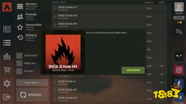 1、打开腐蚀生存手游,游戏需加速器启动,选择一个房间;