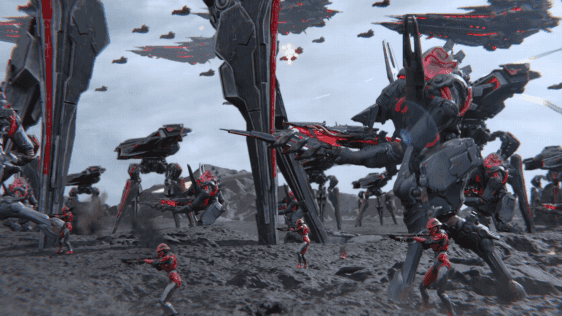 【多形态热血战斗 千人星际战役】 支持机甲格斗、游侠狙击、星舰编队作战三种模式,自由切换职业与载具,参与千人级PvPvE星际战役,大屏观赏战斗特效更震撼。