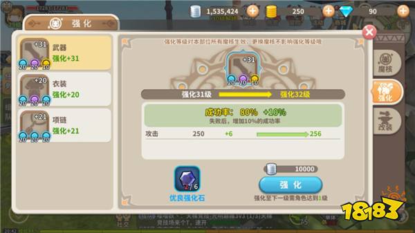 装备可消耗强化石强化获得强力的属性加成,强化等级对本部位的魔核生效。强化石可通过商店、日常活动、竞技场、寻宝等途径获得,需要注意的是装备的等级越高所需强化石也会相应增加,合理分配才是王道哟!
