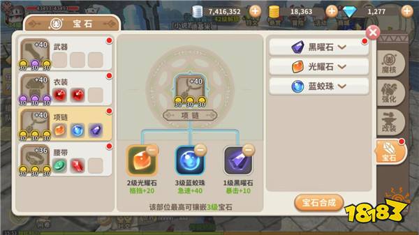 当萌主经过历练达到34级并完成引导任务“了解宝石”后,宝石系统开启。每个装备栏位可镶嵌最多3颗宝石,两颗相同的宝石可合成更高级的宝石,获得更多属性加成