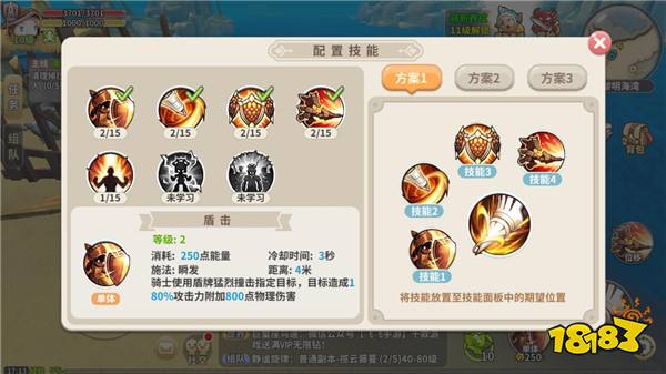 进入“技能配置”后,玩家可以在系统提供的三个方案中,对技能的排布进行编辑。根据自己游玩的习惯,或对战斗时的不同需求,将最适合的技能配置在技能栏中吧!