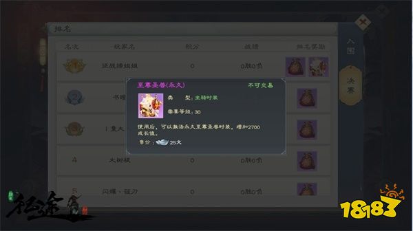 7、决赛结束后,系统根据玩家最终排名发送排名奖励