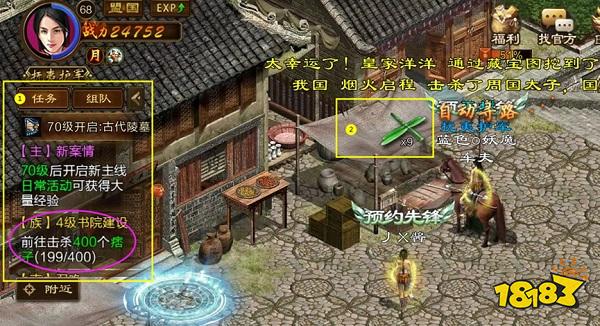 ①只需要点击界面左边任务栏对应的任务,角色就会自动跑到对应的任务地点。