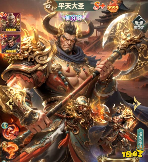 平天大圣与齐天大圣存在专属羁绊,两人同时上阵可共享15%攻击加成。由于齐天大圣在古神阵营内协同性极强,因此平天大圣天然适配古神体系队列,承担前排抗压、群体减攻、同排增防三重职能。即便玩家尚未集齐完整古神角色,也可将二者组合纳入混搭阵容,在非纯古神队中持续发挥减攻与防御支援作用,机制兼容性良好。