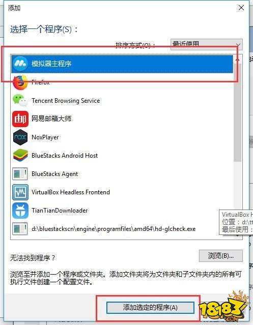 选择模拟器主程序,添加。
