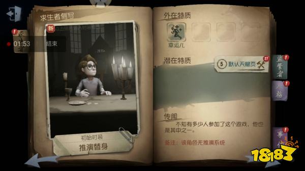 幸运儿这个角色被设定为剧情推演的替身,所以没有关于这个角色的介绍和信息,没有推演系统,也无技能,俗称“三无人员”