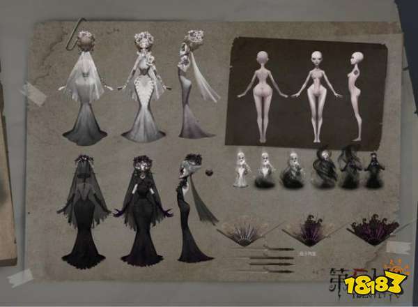 上图是设计的图片,这里可以看到红蝶的变身是一步一步的也就是会不断的黑化最后是个全黑,还有就是这个监管者的武器是一个扇子。红蝶上线时间是在五月中旬,大家到时候准备好拭目以待吧。