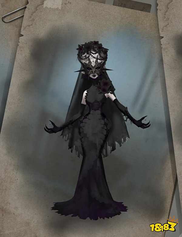人形的时装是一套白色的婚纱,还带有面纱,让她充满了一种朦胧的味道。当战斗时变为飞蝶之后,红蝶的婚纱时装则全部都是黑色轻纱笼罩在身上,充满一种诡异的感觉,又带有一点西域风情的味道,再加上那黑色的面具,总感觉有一种神秘的吸引力吸引着玩家。