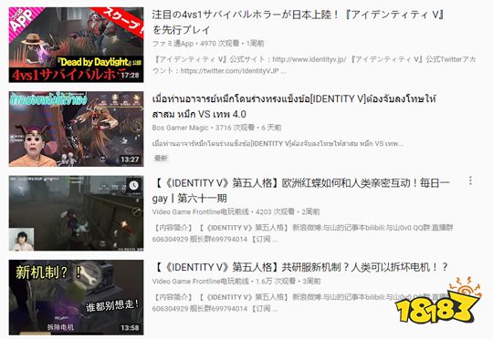 第五人格在国内的热度还是比较不错的,从刚上线到现在一直保持着不错的手游竞争力,当然目前国外玩家对于这款游戏也是非常的期待。在Youtube平台上输入Identity V(海外版),视频就已经多达500多玩部,在Facebook上也是被很多的用户探讨。第五人格国际服玩法和国服是一样的,玩家扮演求生者和监管者两方阵营中的角色,通过1V4非对称性对抗,来上演一场属于生存的刺激游戏。