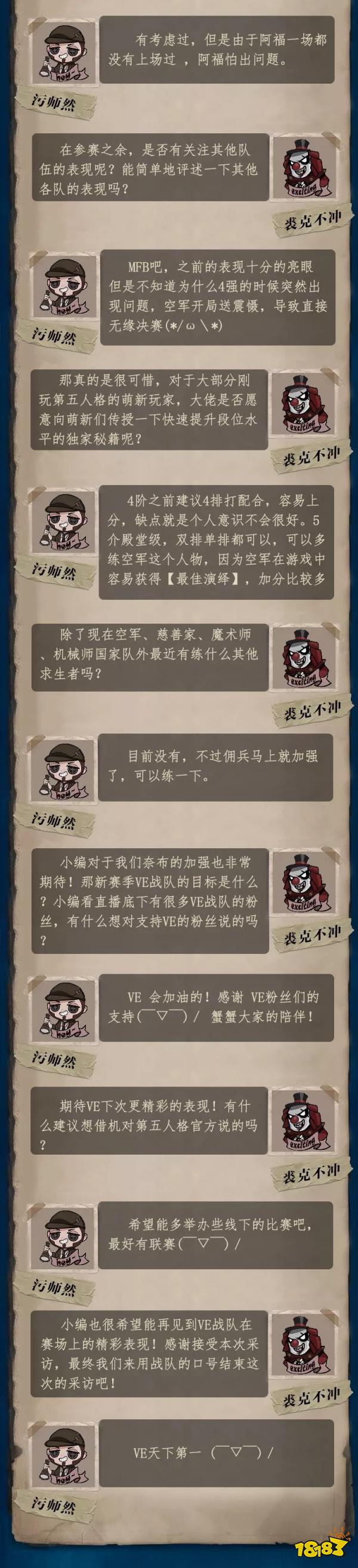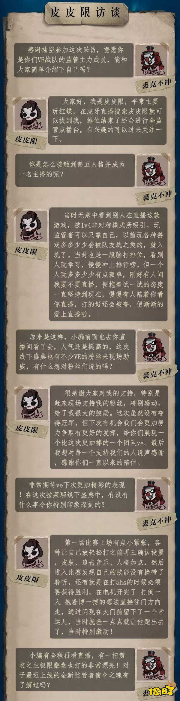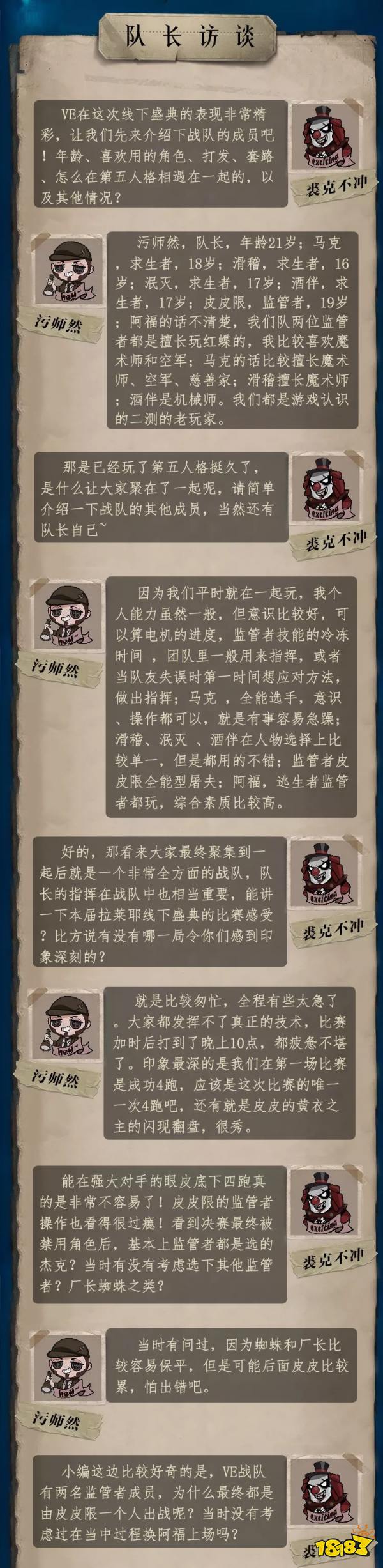 以上就是今天小编给大家分享的第五人格盛典专访VE战队的全部内容,更多精彩内容请持续关注18183第五人格专区。