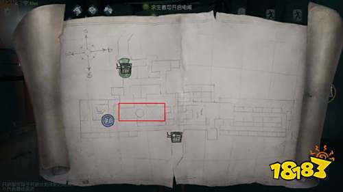 另一个控制台在前门附近,如下图绿色指标位置,两个控制台有同样的作用,可以当成律师地图使用,查看监管者位置。