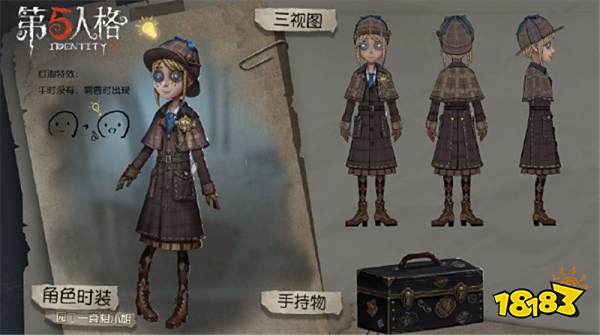求生者园丁的新皮肤——真相小姐,属于高级紫皮时装,整体采用独特的侦探元素设计风格,搭配上简单干练的格纹服装,手执旅行箱,干练帅气。