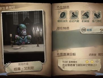玩法心得:前锋属于一个纯溜屠夫的角色,在修机方面是个硬伤,所以建议在前期第一个队友被打的时候就主动去找屠夫保护队友,不然屠夫留你到最后可能就凉凉了,在溜屠夫的过程中橄榄球千万不要省,屠夫快追上了就用橄榄球转点,不然很容易就被屠夫逮住
