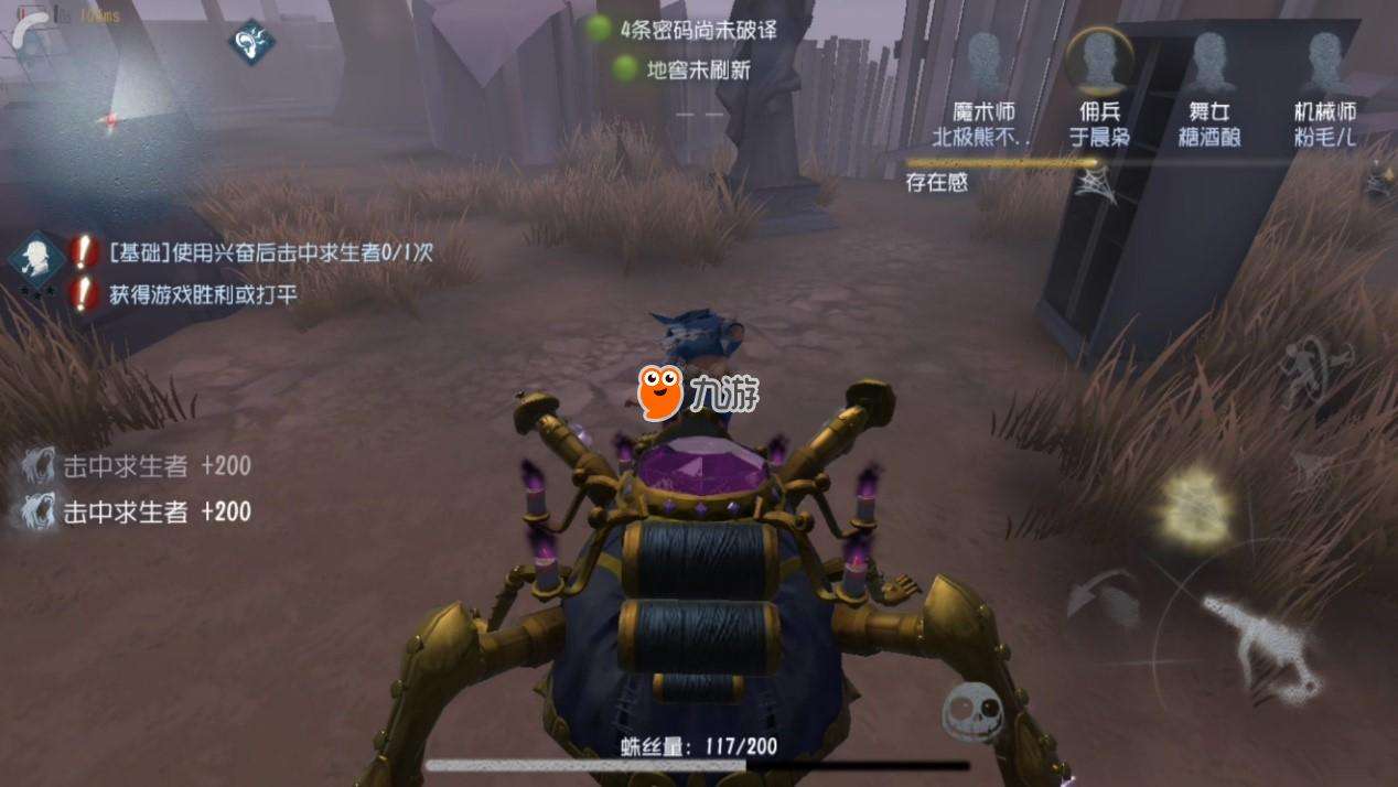 张狂:监管者在游戏开始后持续一段是时间内将持续获得存在感,存在感的获取会在解锁一接技能后停止。