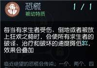 恐慌:有玩家受伤、倒地或放椅子会减少破译速度,这个天赋是目前对抗机皇队伍的关键,叠加起来效果还是很恐怖的。
