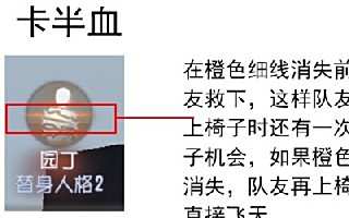 卡半/卡死:队友上椅子之后在右上角图标红线前把队友救下来即为卡半,队友上椅子之后右上角图标血条几乎读满但在飞天前把队友救下来即为卡死。