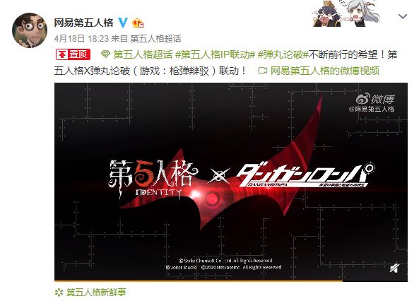 在4月18日晚,第五人格官方微博抛出了一个第五人格和弹丸论破的联动视频,在视频中只出现大家最熟悉的黑白熊角色,虽然目前透露的只有一个PV,但后续情报应该会陆续曝光。