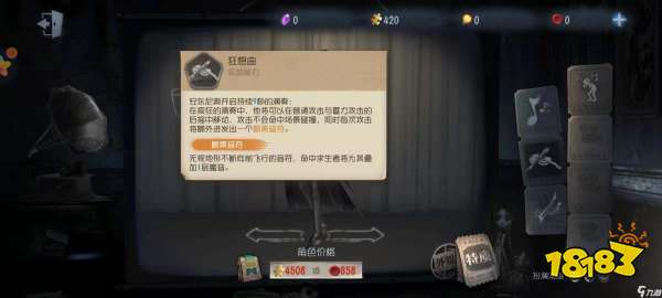 小提琴家能够在技能命中求生者时,对求生者施加魔音的BUFF。魔音BUFF会减缓求生者的移动速度、破译、治疗和开门速度。最OP的是此BUFF还可以随着求生者被小提琴家技能的次数叠加至最多3层,分别降低求生者4%/8%/12%的移动速度和15%/30%/50%的破译、开门、治疗速度。