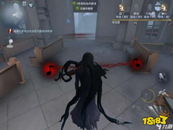 玩家使用狂想曲会在攻击的时候发射一个颤栗音符,颤栗音符会无视地形一直飞行,如果击中求生者收益很大,但是同样考验玩家的预判。