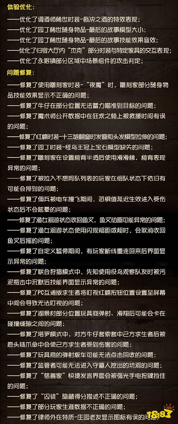 以上就是小编整理的关于《第五人格》7月22日更新内容一览的全部内容,更多游戏攻略请持续关注18183手游网!