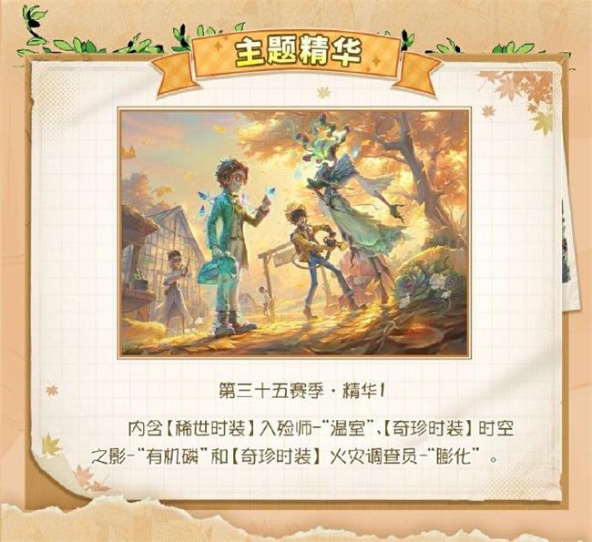 《第五人格》主题活动“田园秋收节”将在9月26日维护后开启,同时也开启了第三十五赛季。第三十五赛季·精华1将会带来3个新的时装皮肤。详情如下: