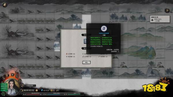 一段剧情后获得秋枫夜话琉璃盏;火水雷风土木灵根+15并结束奇遇