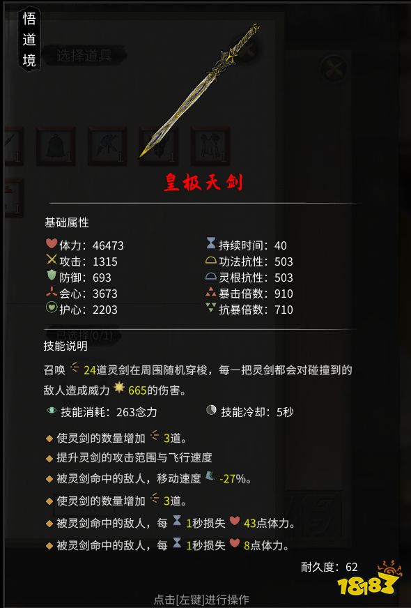 鬼谷八荒的器灵版本现在已经上线了,相信很多小伙伴都已经玩上了。但是也有一部分刚入坑的新手玩家对鬼谷八荒的系统和玩法还不是很了解,导致上手比较困难。那么鬼谷八荒游戏中悟道境的法宝皇极天剑属性和技能效果是什么呢?这里给大家分享一个鬼谷八荒皇极天剑攻略,帮助大家快速上手游戏。十分推荐新手玩家学习和参考。下面就一起来看一下吧,希望可以帮到大家。