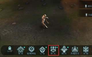 玩家可在主界面进入到祭坛,游戏中祭坛主要出产佣兵的各类道具及不同品质的佣兵。