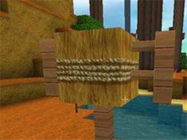 先放栅栏1个,就是它的脚,然后在该栅栏上放一个草垛,是它的身体,接着在草垛的左右两侧各放一个栅栏,是它的双手!