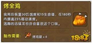 驯服:驯服迅猛龙时,迅猛龙吃的是:烤全鸡(6个鸡腿合成);