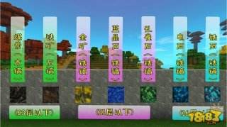 这就是《迷你世界》最基本的7种矿石,从左到右分别是煤→铁→黄金→蓝晶→孔雀石→电石→钻石。