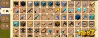 在创造模式中,打开物品栏——工具——红色箭头指向的黑色格子方块。