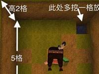1.首先挖一个长宽都是3格深1格的坑,最中心再往下挖2格;