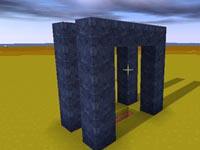 1、在空地上用地心基石建起两个高5格、宽度任意、间距1格的两个平行放置的拱门;