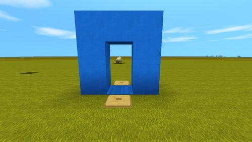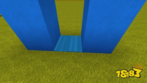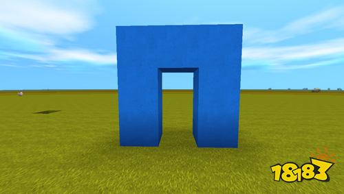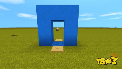 这是一个非常简单的透明隐藏门,制作它所使用到的材料比较少,首先我们用蓝色硬沙块做一个门的形状(当然这里不算用什么方块,只要能做成门的形状就可以了)。