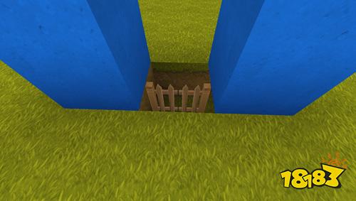 在木栅栏门上面铺上地毡,如果没法直接放置,可以在边上放个方块进行过度。这样一个隐藏门就做好了,我们走上去会发现根本走不过去。