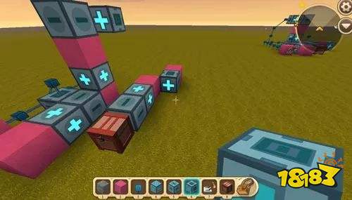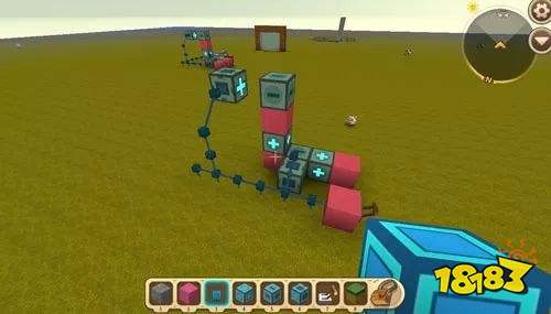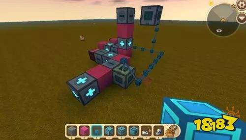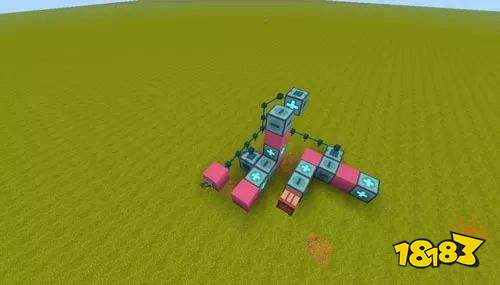 然后我们继续搭建+号方块和-号方块,当然图一滑动方块后面的辅助方块换为电能线,第二个浮空滑动方块也同样需要辅助方块来辅助调整朝向!