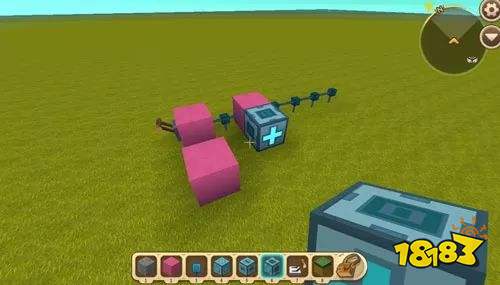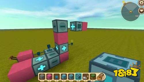 1、首先放置好电路,由于滑动方块的朝向问题,需要在电路那里先放一个辅助方块来调整好滑动方块的位置,就像图上放置的样子加号对着右边就对了!