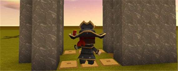 1.首先用岩石垫一个4格的高度(高度根据自己需求来),然后将滑动方块朝向一会儿要放门的方向(也就是+号朝向标记器),往后面做两个辅助方块,然后对着辅助方块放滑动方块,就能成功。