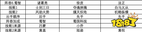 蜀智阵容,技能暴力输出,法正先手,提升免疫,保证脆弱法师的生存。