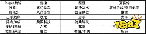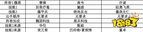 大魏盾改良版,增加曹操智力输出,徐晃换典韦,提升武将输出,半肉半输出的状态。